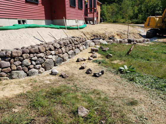 This is a dry stacked (mortarless) fieldstone wall at a new home in New Durham.